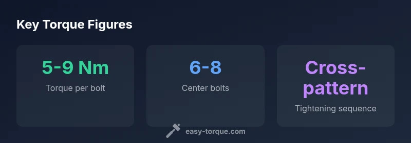 The per-bolt torque typically falls in the 5-9 Nm range, with many OEMs targeting 6-8 Nm. Exact figures depend on engine code, gasket material, and bolt length. Always consult the factory service manual for your specific engine.