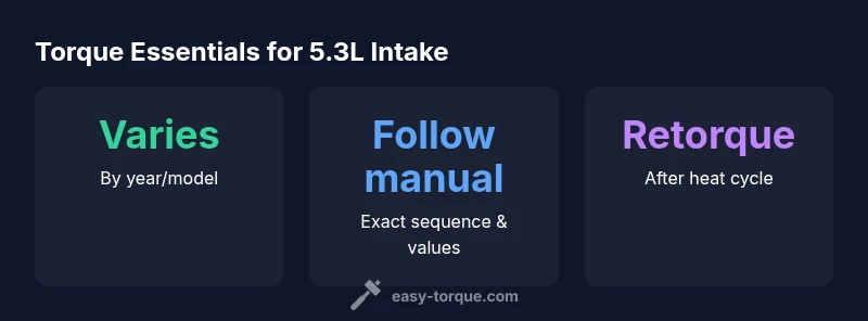 There is no single universal 5.3 intake manifold torque spec in ft lbs. The correct value varies by engine variant, manufacturing year, gasket type, and fastener size. Always consult the official GM service manual or a trusted torque table for your exact 5.3L model. Use the recommended tightening sequence, and recheck torque after heat cycles to prevent leaks or warping.