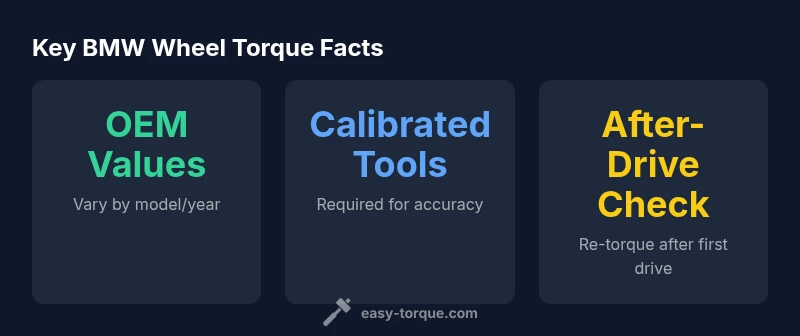 For BMW wheel torque specs wheels, the exact values depend on model and wheel type. Always verify the OEM specs from the owner's manual or dealer information before installation. This quick answer highlights the key points: what to torque, how to torque, and why re-checking matters. Keep in mind that factors like hub cleanliness, thread condition, and lube can influence effective torque.