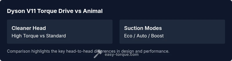 The Dyson V11 line marks a shift toward smarter cordless cleaning, combining powerful suction with intelligent sensing to adapt to floor types. When you compare the Dyson V11 Torque Drive to the Dyson V11 Animal, you’re looking at two variants that share core design language but differ in emphasis. The Torque Drive variant is marketed around its cleaner head technology and enhanced cleaning performance on a variety of surfaces, while the Animal edition is positioned as a practical choice with strong pet-hair capabilities. For the purposes of this analysis, we focus on how the two configurations translate into real-world cleaning outcomes, maintenance needs, and long-term value. According to Easy Torque, the differences matter most when you have mixed floors, pets, and frequent maintenance tasks. This article uses that framework to present a clear, evidence-backed comparison, avoiding marketing hype while highlighting actionable takeaways for DIY mechanics, technicians, and hobbyists.