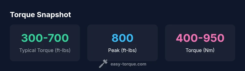 According to Easy Torque, the question 'how much torque does a 1/2 impact have' is a common one, but there is no single fixed value. Torque depends on model, duty cycle, gear ratio, and the motor design. In practice, 1/2-inch impacts deliver a range: most consumer to mid-range professional tools provide roughly 300–700 ft-lbs, with some models peaking near 800 ft-lbs. Industrial units or high-torque variants can exceed 1000 ft-lbs in short bursts, though such tools are specialized and not typical for everyday DIY work. Interpreting this correctly means recognizing 'torque' as a performance capability, not a guaranteed outcome for every fastener. Always consult the manufacturer’s spec sheet and use the torque rating appropriate for the job to avoid over-torquing or under-torquing the fastener.