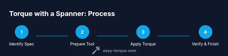 Torque is the precise rotational force used to clamp fasteners to a specific load. When you torque with a spanner, you rely on leverage, balance, and your sense of feel rather than a built-in torque readout. This approach works well for many DIY tasks, but it comes with responsibility: too little torque can allow joints to loosen; too much torque can strip threads, deform parts, or snap bolts in hot or stressed conditions. According to Easy Torque, following the manufacturer’s torque specification is essential to achieve the correct clamping load without compromising components. Start by locating the published torque value on the fastener or equipment manual and note the units (Nm or ft-lbs). If the assembly specifies a tightening sequence, follow that pattern rather than tightening bolts individually. Before you begin, ensure the work area is clean, the fastener and hole are free of debris, and you have steady lighting. A stable posture helps you avoid slips—keep your spine aligned and shoulders relaxed, and never twist from the wrist alone. When you apply torque with a spanner, apply steady, incremental force, and avoid sudden jerks that can momentarily over-stress the bolt or the surrounding material. This method is a practical skill for DIY mechanics and technicians who want to preserve fasteners and achieve consistent results over time.