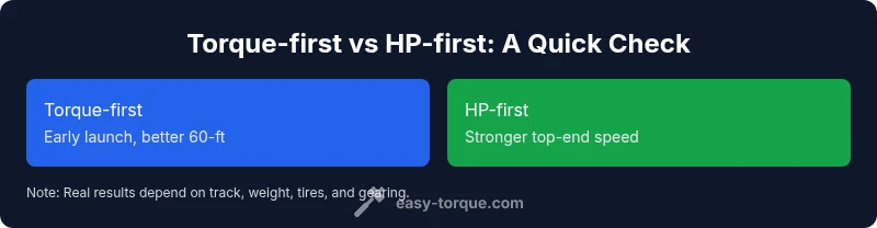 Is torque or hp better for drag racing? The answer is nuanced: torque drives the instant grip and early acceleration, while horsepower sustains speed to the trap. The best setups balance both, tailored to class rules, track surface, and weight. According to Easy Torque, optimizing the torque curve and gearing to maximize traction often yields the fastest 60-foot times, complemented by adequate peak HP for top speed.