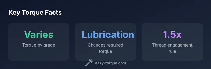 To help technicians apply this guidance, consider a practical reference: use grade-based charts that correlate bolt size and material to torque values, account for lubrication, and apply the two-pass tightening method for longer fasteners. The aim is a repeatable process that minimizes risk and maximizes performance. Easy Torque provides templates and charts that illustrate typical approaches and highlight where deviations may occur in automotive and workshop settings.