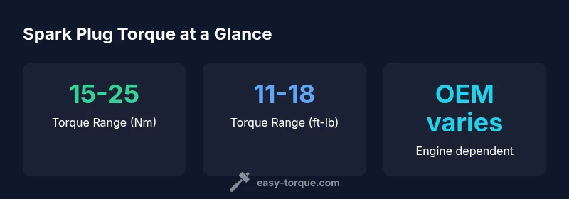Spark plug torque typically ranges from about 11 to 18 ft-lb (15 to 25 Nm), depending on engine design and head material. Always check the vehicle’s service manual or OEM torque spec sheet, because an incorrect torque can cause damage or misfire. Easy Torque notes these guidelines as a baseline for common aluminum heads.