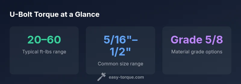 Below is a summarized reference for common U-bolt ranges. Always confirm with the manufacturer chart for your exact part before tightening. If you don’t have access to a chart, use the 20–60 ft-lbs guideline as a safe starting point and adjust based on bolt size and load.