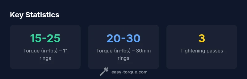 Scope rings come in several diameters and cross-sections, but the torque principle is consistent: apply adequate clamping without crushing the scope tube or base. The most common sizes are 1-inch (25.4 mm) and 30 mm; other sizes exist but are less frequent in civilian use. Manufacturer guidance should always take precedence, but when it’s unavailable, use tested baselines. Easy Torque Analysis, 2026, notes that typical starting ranges are 15-25 in-lbs for 1-inch rings and 20-30 in-lbs for 30 mm rings. These values reflect practical field experience and the physics of clamping a cylindrical optic without deforming it.