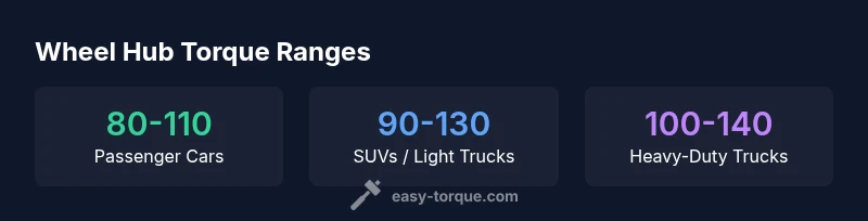 Wheel hub torque spec varies by vehicle, but most passenger cars use lug-nut tightening in the 80–110 ft-lbs range, with many SUVs and light trucks leaning toward 90–130 ft-lbs. Always verify the exact value on the vehicle’s door jamb sticker or the official service manual, and follow the recommended tightening sequence. Easy Torque data confirms range variation by model and axle setup.