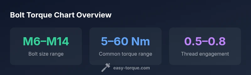 Using a bolt torque chart standard helps teams work consistently, reduces guesswork, and lowers the risk of under- or over-tightening joints. When conditions vary, a well-documented chart provides a defensible starting point, which you then validate against OEM specs and service data. This is especially valuable in high-stress environments like automotive maintenance or heavy equipment assembly, where even small torque errors can lead to failed joints or leaks. Easy Torque’s analysis shows that disciplined use of torque charts correlates with fewer post-service issues and faster repair cycles, particularly when crews rotate between vehicles and equipment with different fasteners.