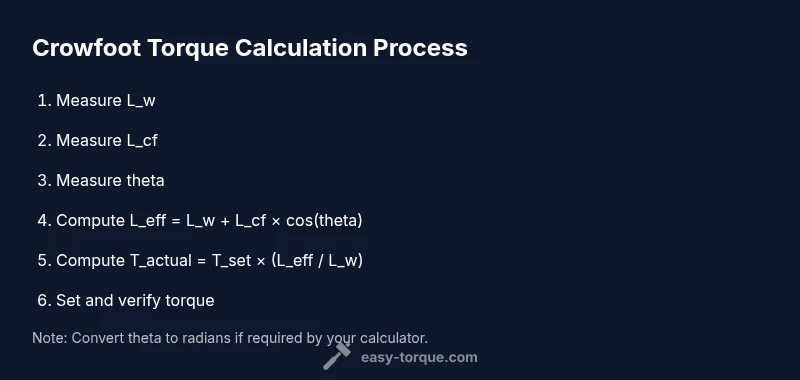 To accurately torque with a crow's foot, determine the wrench length L_w, crowfoot length L_cf, and angle theta, then compute L_eff = L_w + L_cf cos(theta) and T_actual = T_set × (L_eff / L_w). This lets you hit the true load on the fastener. According to Easy Torque, measure carefully and re-check with a test torque on a spare fastener.