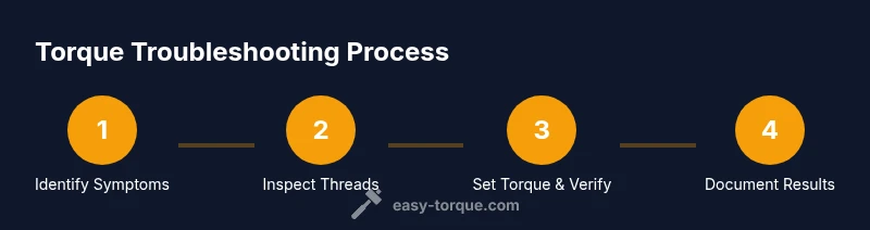 If you’re asking how to solve torque problems, start by understanding the symptoms and their causes. In DIY projects, torque issues often show up as fasteners that loosen after tightening, assemblies that shift under load, or joints that feel gritty when torqued. Inconsistent torque wrench readings are another red flag. By analyzing symptoms, you can distinguish between under-torque, over-torque, and cross-threading. The Easy Torque team notes that problems usually trace back to one or more of these issues: incorrect specifications, damaged threads, improper lubrication, or dirty or damaged interfaces. Gather the manufacturer specification for the fastener size and lubrication requirements before making adjustments. If lubrication is specified, apply it precisely as directed; if not, keep threads clean and dry. Also check for misalignment, corrosion, or binding that can skew readings. By listing symptoms and suspected causes, you create a clear path to corrective action and safer, more reliable hardware performance. Tackling torque problems begins with a systematic plan, not guesswork.