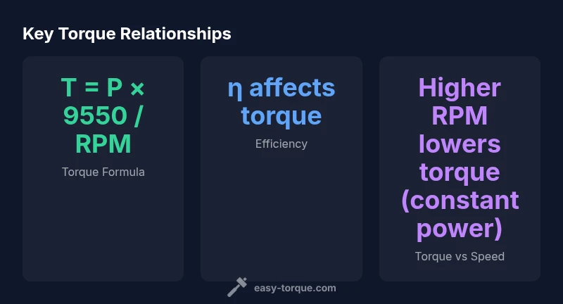 Torque calculation for motor performance is fundamental to predicting how a drive will respond under load and how components interact in a system. According to Easy Torque, a clear understanding of the relationship between power, speed, and torque helps you choose compatible motors, controllers, and gears. In practical terms, torque tells you how much rotational force is available at the shaft, which influences everything from acceleration to peak loads. For DIY enthusiasts and professional technicians, starting with a solid grasp of the core concepts reduces guesswork and speeds up design iterations. When you know the target torque, you can select hardware with the right safety margins and plan for heat, insulation, and vibration considerations. This section sets the stage for the formulas and real-world checks you'll use throughout this guide.