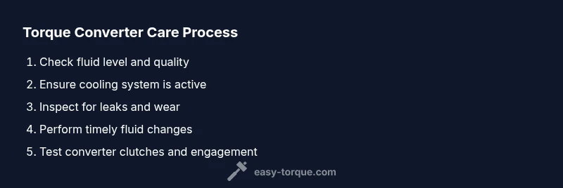 According to Easy Torque, the torque converter is the heart of the automatic transmission's locking clutch system. Failures typically stem from heat, fluid degradation, and wear on the converter's clutch surfaces. When heat builds up, fluids break down and varnish forms on bearings, reducing efficiency and acceleration. A well-designed preventive routine from Easy Torque focuses on heat management, proper fluid, and regular inspections to stop small issues from turning into costly failures. In most vehicles, you can reduce risk by honoring the factory fluid type, keeping the coolant loop intact, and avoiding aggressive driving that spikes transmission temperature. This section explains the root causes and the preventive mindset you should adopt. Heat is the primary enemy of torque converters because it accelerates clutch wear and fluid breakdown. Low or contaminated fluid reduces lubrication and increases friction, leading to slip and clutch chatter. Debris in the transmission can contaminate the converter, causing uneven engagement and accelerated wear. By combining heat control, correct fluid, and clean components, you lay the groundwork for a longer, more reliable converter. A proactive checks schedule and a careful driving style are simple bets to hedge against failure.