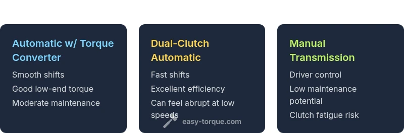 | Feature | Automatic with torque converter | Dual-clutch automatic | Manual transmission |