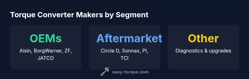 Torque converters are manufactured by a mix of large OEM suppliers and specialized aftermarket firms. The core OEMs that typically design and supply torque converters are major transmission integrators such as Aisin Seiki, BorgWarner, ZF, and JATCO, while the aftermarket segment is led by brands like Circle D, Sonnax, Precision Industries (PI), and TCI Automotive. In short, both OEMs and aftermarket specialists produce torque converters, with OEMs ensuring broad compatibility and aftermarket options delivering performance-focused alternatives.