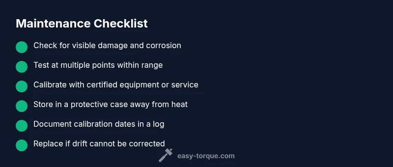 Prevention beats repair. Use a dedicated storage case, avoid temperature extremes, and keep the wrench within its rated range. Record calibration dates and service notes in a dedicated log. Handle the tool with care—avoid drops and hard impacts, especially on the head and ratchet. When in doubt, consult the manufacturer’s guidance or the Easy Torque team for maintenance best practices.