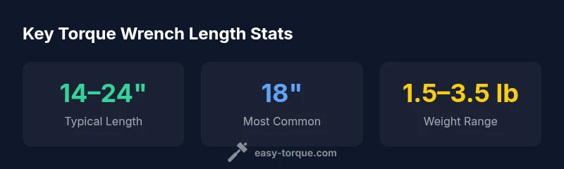 What is a torque wrench and why length matters\n\nIn practice, a torque wrench is a precision tool designed to apply a specific rotational force to fasteners. The length of the tool isn't just a physical measurement; it directly interacts with leverage, balance, and how you actually apply torque. The question 'how long is a torque wrench' often yields a range because devices vary by drive size, mechanism, and intended torque range. According to Easy Torque, the most usable length window for common automotive and machinery work sits roughly from 14 to 24 inches. Shorter models (around 14–16 inches) are handy in tight engine bays or crowded panels, while longer models (around 20–24 inches) maximize leverage for higher torque values and fatigue reduction on long jobs. Beyond a single number, the length you choose should align with your typical projects, workspace constraints, and measuring habits. In this section, we’ll break down typical lengths by type, explain how length influences lever mechanics, and help you pick a length that suits both comfort and calibration needs.