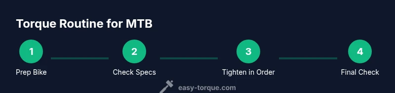Follow the manufacturer’s tightening order for your MTB bike, typically starting with crank or bottom bracket, then derailleur mounts, brake components, and finally wheel hubs.