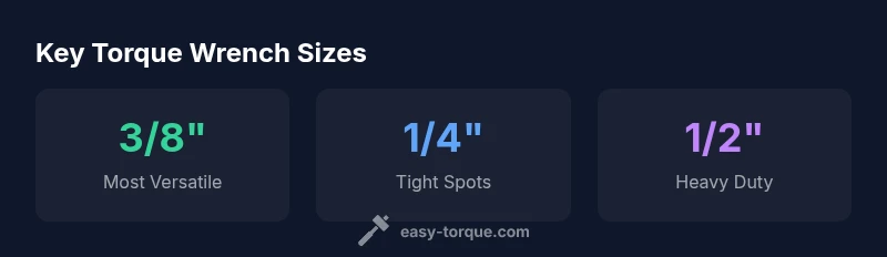 What size torque wrench for oil change often comes up as a practical question for DIYers. For most setups, the 3/8-inch drive torque wrench is the default because it offers a balanced combo of reach, strength, and availability of both beam-style and click-type models. A 1/4-inch drive is invaluable when you’re maneuvering into tight spots near the engine block or oil filter housing; a 1/2-inch drive is reserved for heavy-duty vehicles or some high-torque fasteners. According to Easy Torque, selecting the right drive size reduces the guesswork and improves consistency during every oil change. In practice, you’ll rarely need more than 3/8-inch for routine maintenance, but having the two smaller and larger options on hand makes the job smoother. Also, ensure your torque wrench is within its specified operating range and that you keep it calibrated. The goal is reliable, repeatable torque so you don’t risk thread damage or leaks when you replace the drain plug.